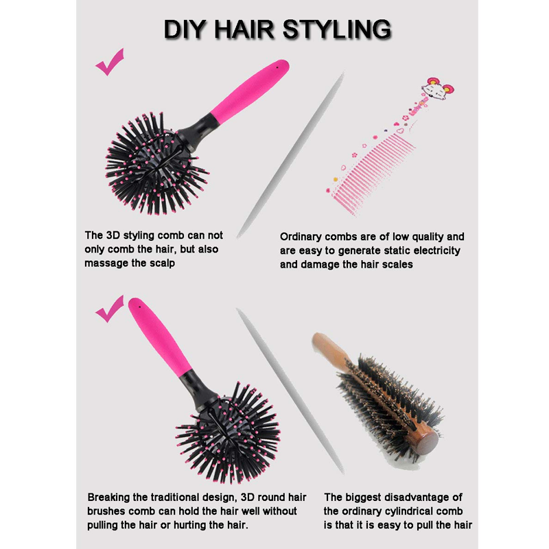 360-DEGREE SPHERICAL DESIGN – The unique spherical bristle layout prevents hair from tangling by guiding strands sideways instead of downward. This design gently separates knots, making combing easier and more comfortable. With every stroke, the brush helps improve softness and shine, leaving your hair smooth while minimizing pulling or breakage, perfect for daily detangling.