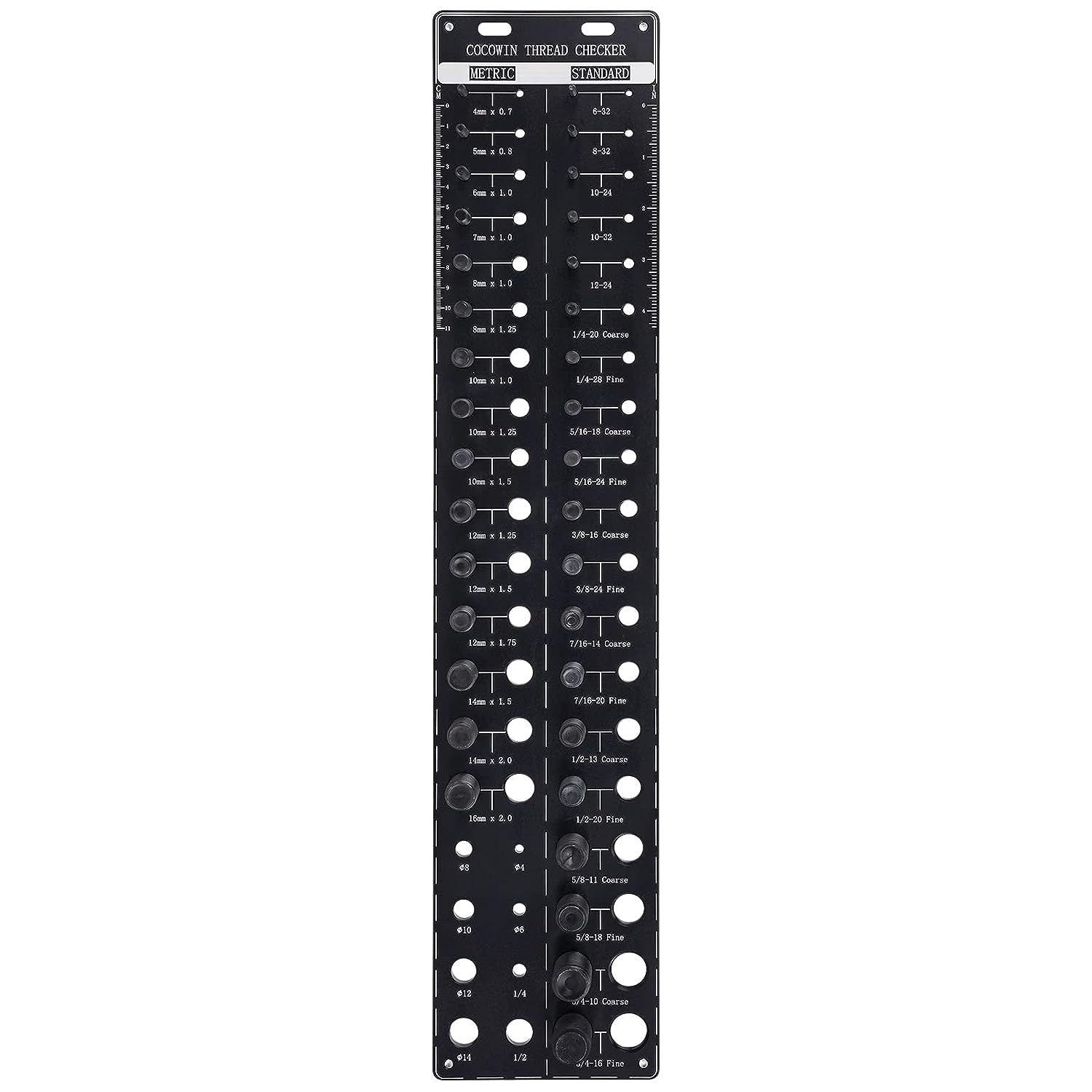 MULTIFUNCTIONAL DESIGNĀ - Built in ruler with 6 inches and 14 centimeters on both sides, the screw thread gauge helps you quickly identify different length of bolt, screw, nut.